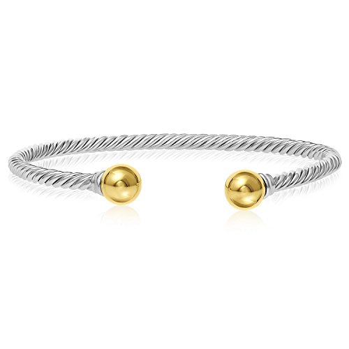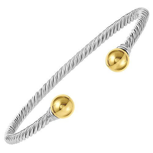 This double ball design cuff twisted bracelet is a member of the family of our Ocean Side's popular line of Jewelry. As part of the most popular styles of the Ocean Side Jewelry line this bangle bracelet features two 14k gold balls that cover the end of the cuff. Each of our jewelry items come in an adorable gift box for safe storage or to surprise that very special person in your life. We produce the high quality items and bring them to you at the best possible prices. We bring you the best quality and value on Amazon and will not be beat. Please contact us with any questions or special orders.Feature