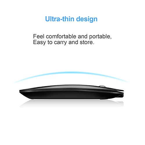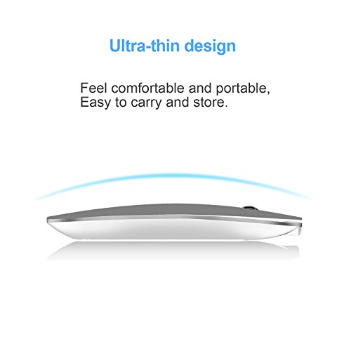 -. Feature : Connection:Improved Bluetooth 3.0 version, connect in 3s and no drop, also support window10, surface, Macs. NOTE NOTE!!! Different devices have different Bluetooth drivers, if connection issues, please delete the current Bluetooth driver of your device and automatic matching for a new Bluetooth driver again, it most will work well, or we will refund all your payment. / Power:Improved Power Revolution - Can be charged with less hours and used with more days. You needn't to buy batteries for your mouse anymore. It has a build-in rechargeable battery and charging socket in the front of mouse. On/off switch on the bottom helps to conserve power. / Design:lightweight, slim design make it perfectly for travel, easy to put in your laptop bag or pockets. Meanwhile, Bluetooth function eliminates the risk of leaving your mouse nonfunctional due to losing the separate USB receiver of normal wireless mice. *NOTE: In order to ensure a good run, we advise that can't use the mouse on a white desktop. / Compatibility:Effortlessly connect to any Bluetooth-compatible PC, laptop, Macs Win7 Win8 Win10, or Android tablet. Intelligent connectivity, no code required. 3.0 interface is backward compatible with all Bluetooth versions. / Controllability: 3 DPI levels to suit both ordinary and gaming needs. Optical laser allows for quick response, precise movement, and smoother tracking.