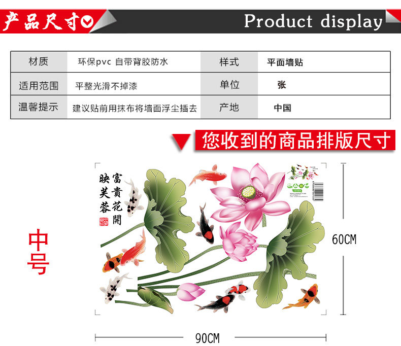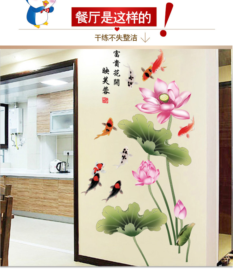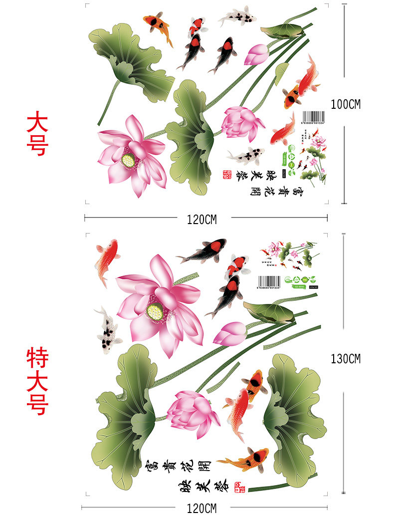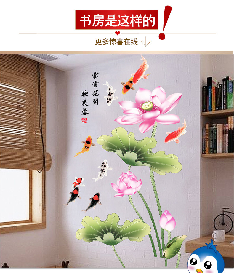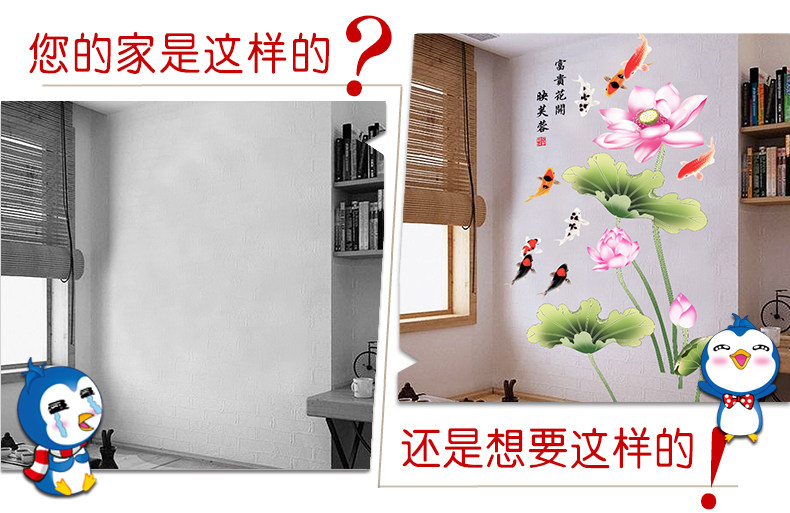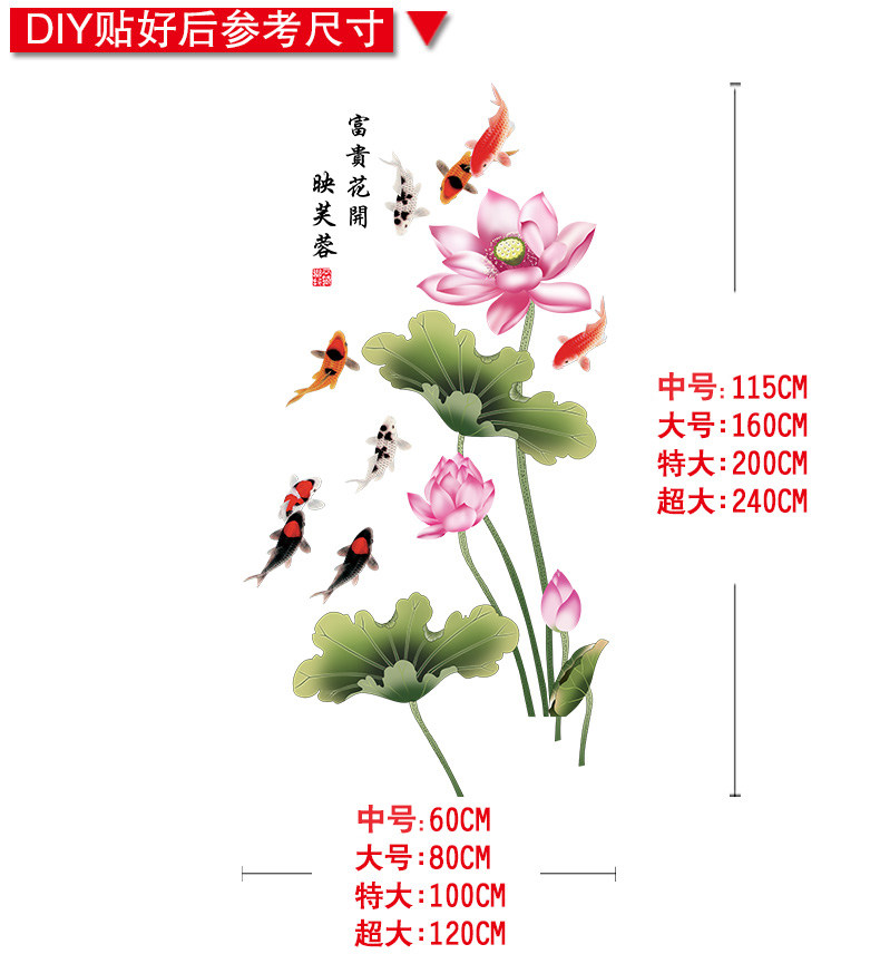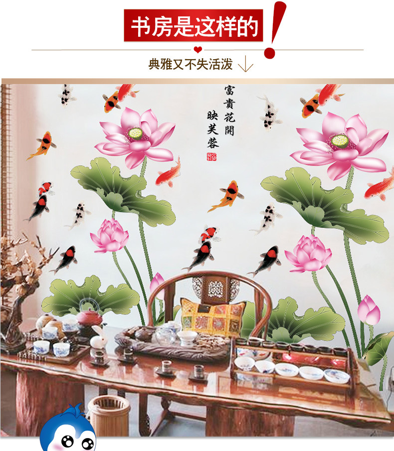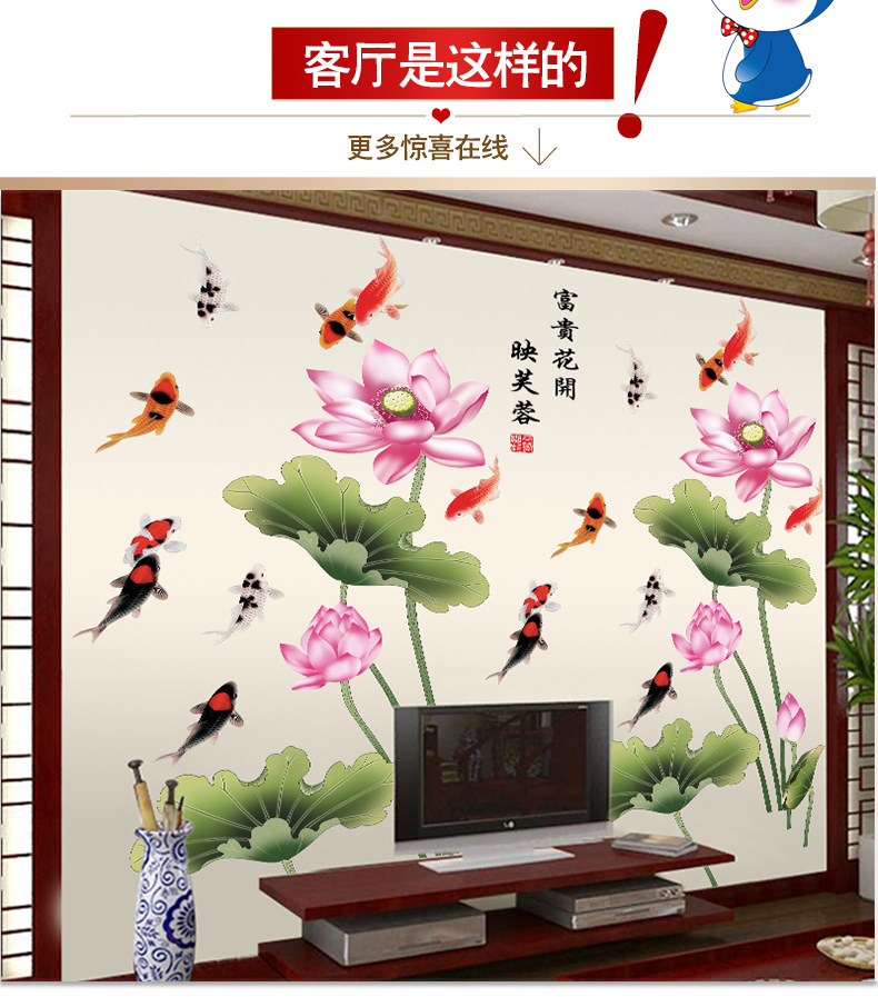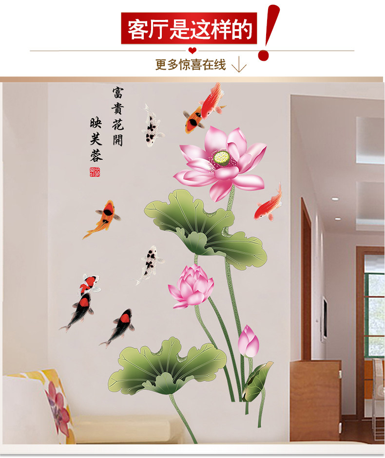 中国风荷花 大型墙贴纸温馨墙上墙面卧室客厅墙纸自粘墙贴画贴花