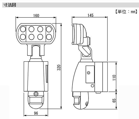 | カラーCMOSカメラとSDカードレコーダーを内蔵し、動体を検知した時に、動画/静止画の録画が可能。録画データはSDカードへ記録。2種類のアラーム音を内蔵し、人体感知時にアラーム音を発生可能。本体防滴仕様(IP規格55相当)。 |