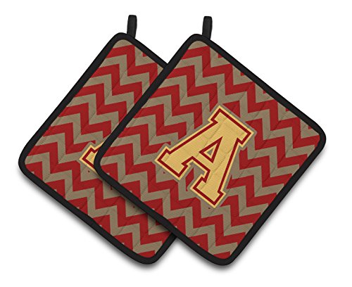 Caroline's Treasures Letter A Chevron Garnet & Gold Pair of Pot Holders CJ1048-APTHD, 7.5HX7.5W, Multicolor