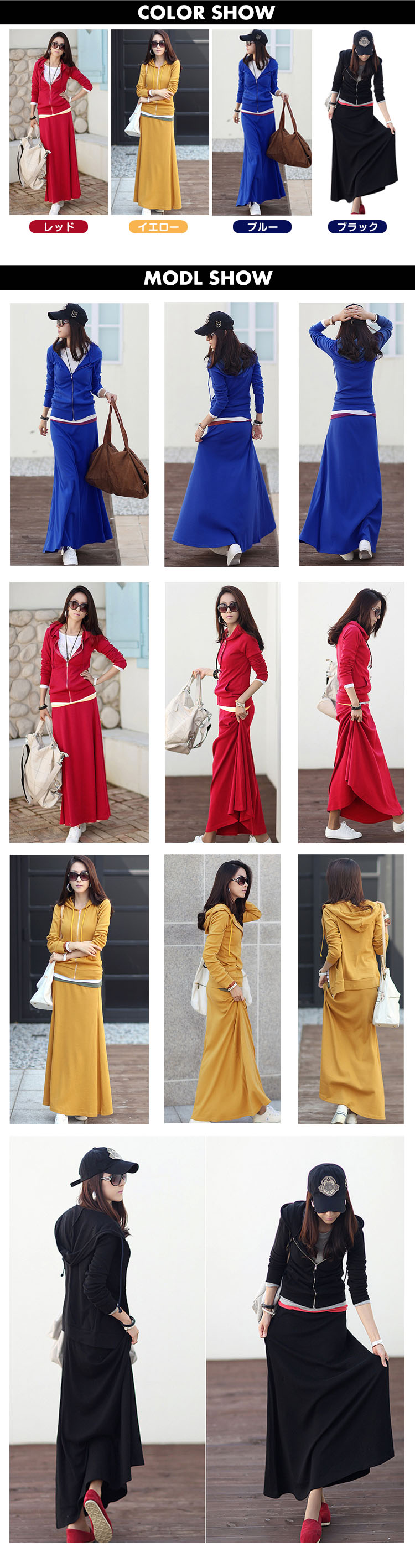 S 肩幅36cm バスト84cm ウェスト62-75cm トップス着丈57cm 袖丈59cm スカート着丈93cmM 肩幅37cm バスト88cm ウェスト66-79cm トップス着丈58cm 袖丈60cm スカート着丈94cmL 肩幅38cm バスト92cm ウェスト70-83cm トップス着丈59cm 袖丈61cm スカート着丈95cmXL 肩幅39cm バスト96cm ウェスト74-87cm トップス着丈60cm 袖丈62cm スカート着丈96cmXXL 肩幅40cm バスト100cm ウェスト78-91cm トップス着丈61cm 袖丈63cm スカート着丈97cm※上記サイズは平置き実寸になります。サイズ表の実寸法は商品によって2-4cm程度の誤差がある場合がございます。