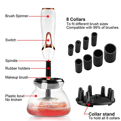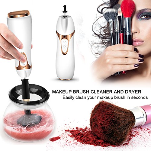LONENESSL Makeup Brush Cleaner,Portable Electric Automatic Spinning Makeup Brush Cleaner and Dryer Machine Brush Cleaner Spinner 360 Rotation Cleans and Dries All Makeup Brushes In Seconds - White