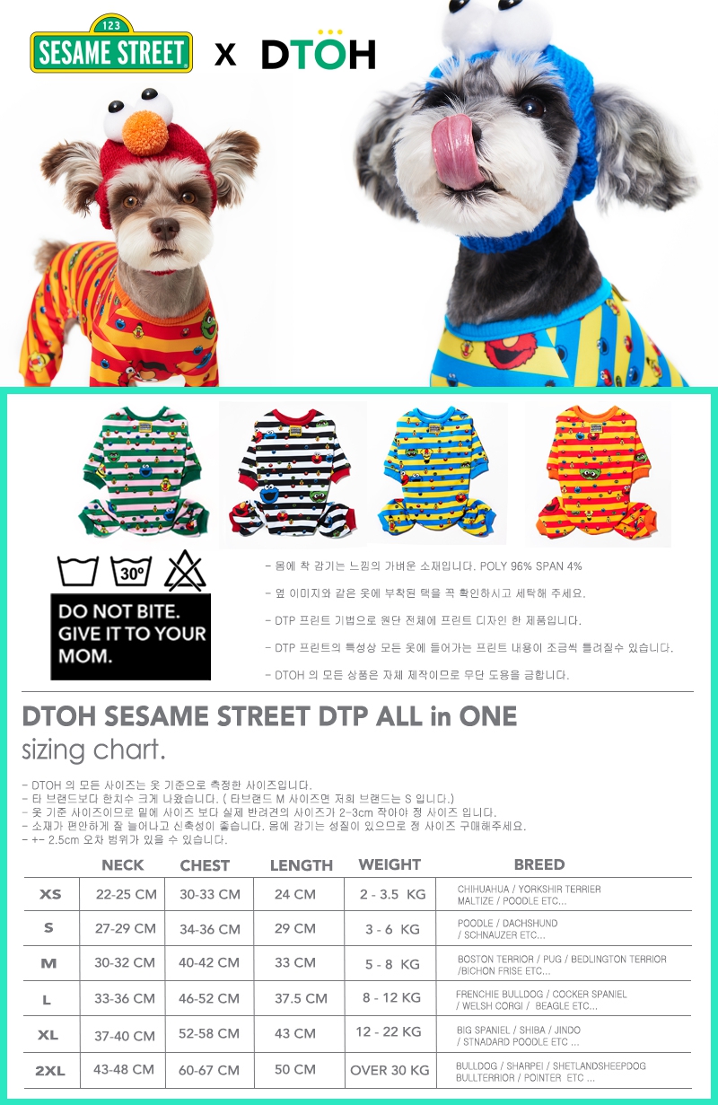 세서미 스트리트의 인기있는 캐릭터들을 옷의 곳곳에서 볼 수 있는 제품입니다.