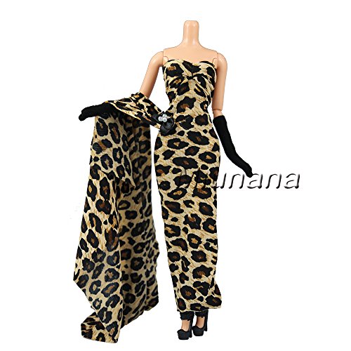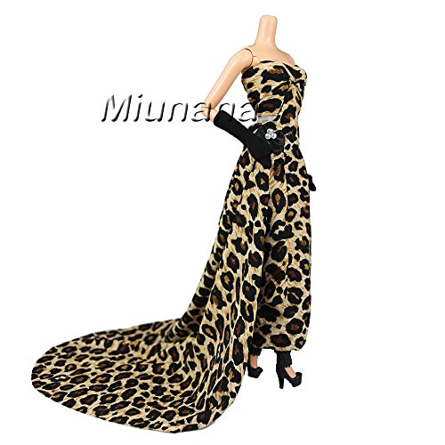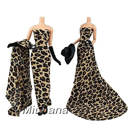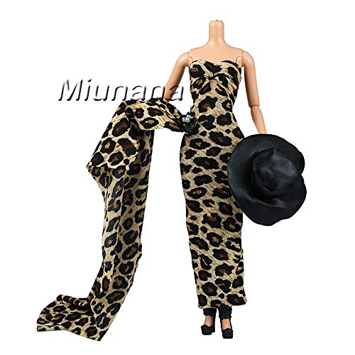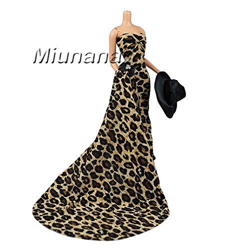 Miunana Abendkleid Prinzessin Kleidung Dress Kleider Leopard Modern mit Hut fur Barbie Puppen Weihnachten Geschenke Xmas
