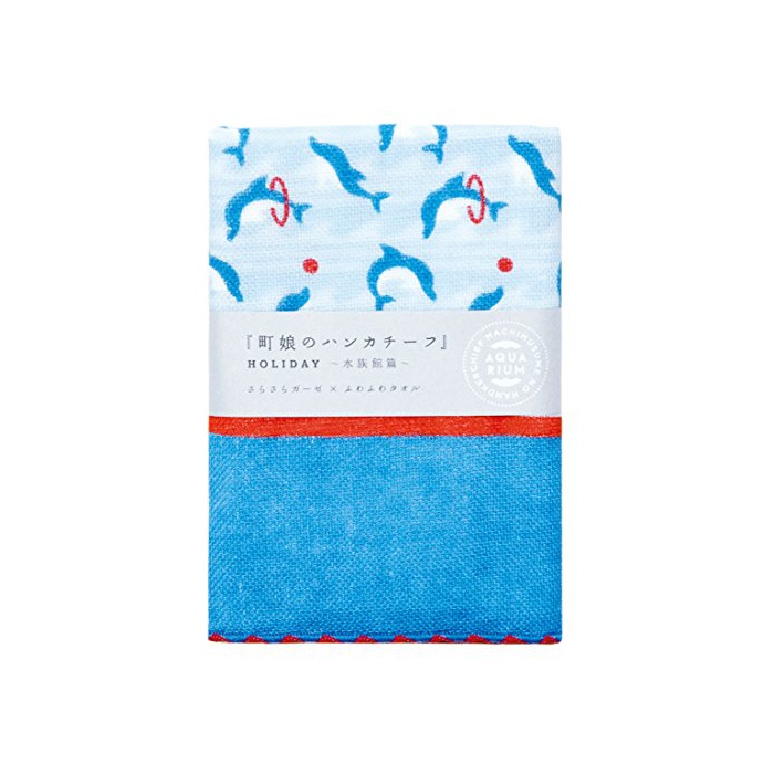 Miyamoto-Towel 미야모토 거즈 타올 정딸(아가씨)의 handkerchief HOLIDAY 수족관편 돌고래 25×25cm