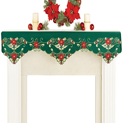 Christmas Green Mantel Scarf Poinsettia Decoration