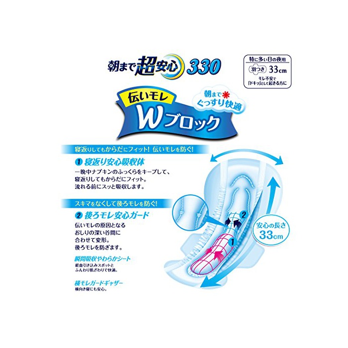 원본상품명: エリス 朝まで超安心 330 羽つき 33cm (特に心配な夜) 16枚