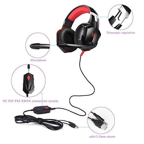 KOTION EACH GS600 Pro PC Gaming Headset Stereo Headphones with Microphone for XBOX 360 / PS3 / PS4 / PC Computer Laptop / Mobile Phones (Black&Red)