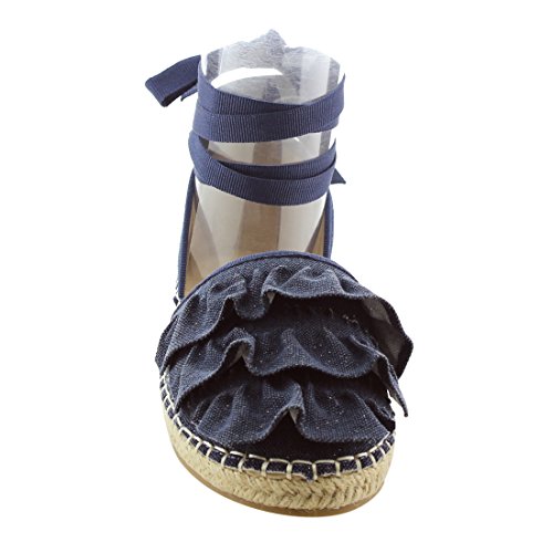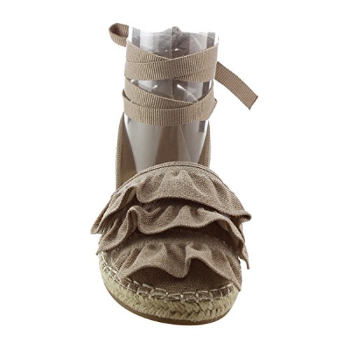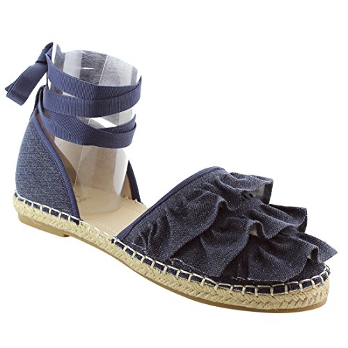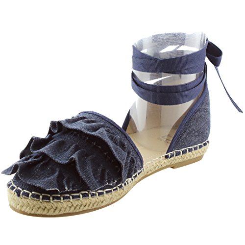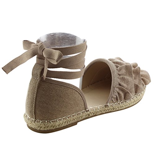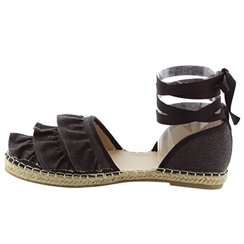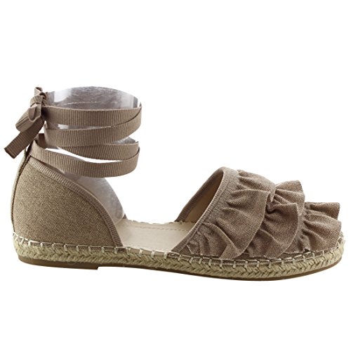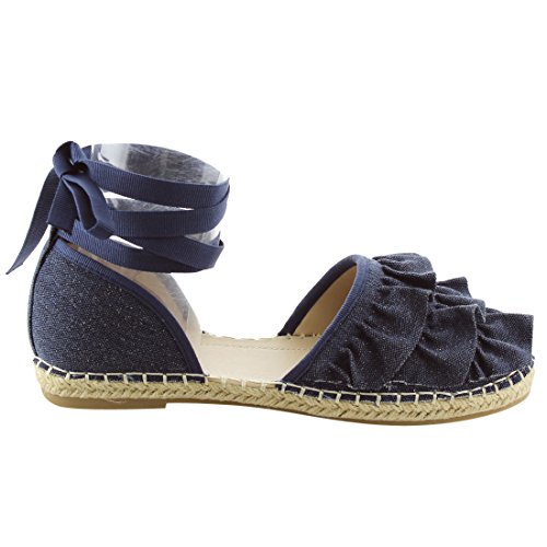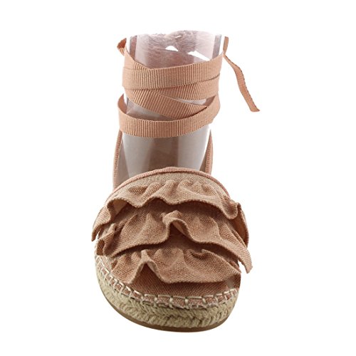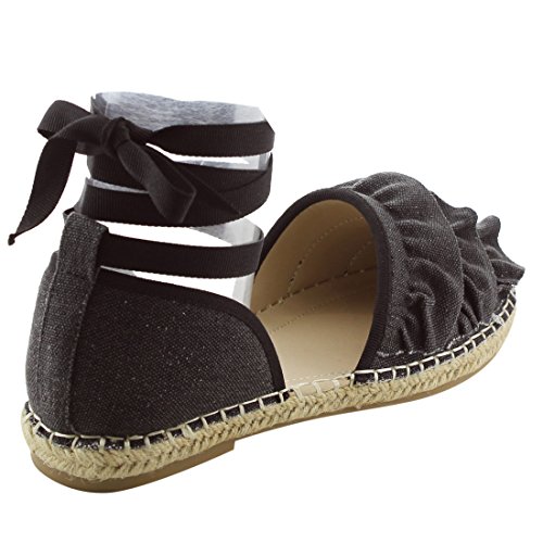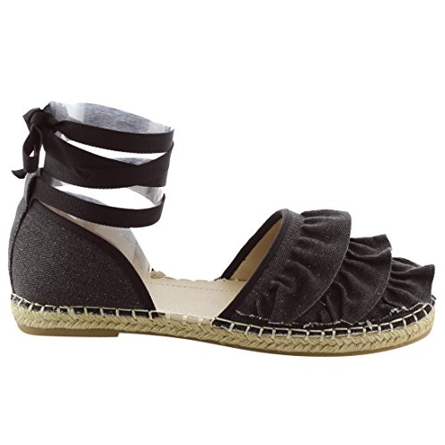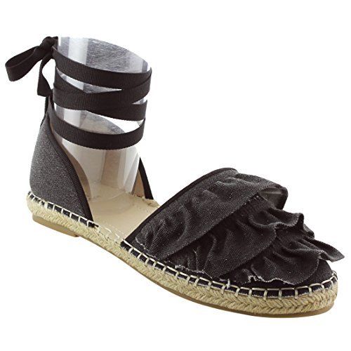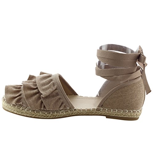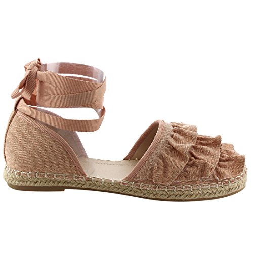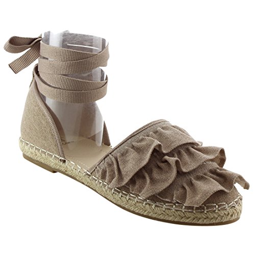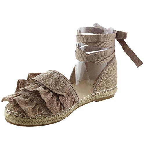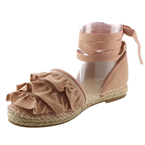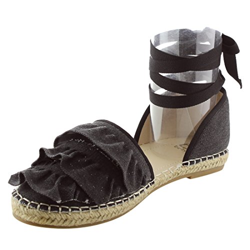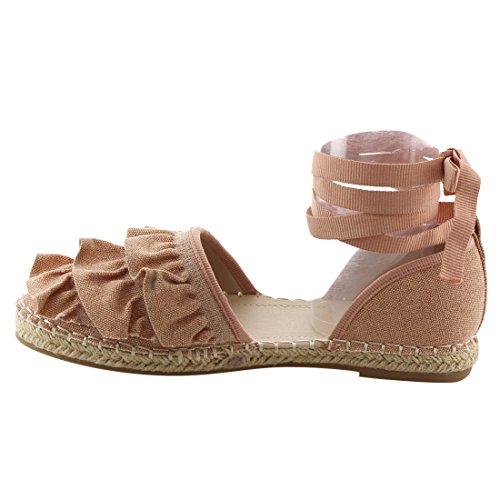 Product Description Rev up your style with these sweet espadrille sandals. Designed with closed round toe, ruffle accents, ties at the ankle and jute rope footbed. 0