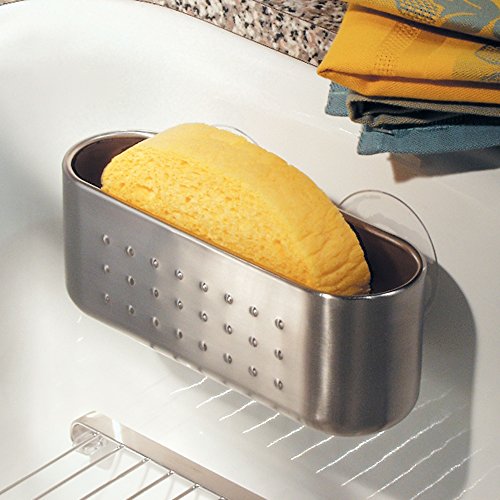 InterDesign Forma Kitchen Sink Suction Holder for Sponges, Scrubbers, Soap - Brushed Stainless Steel
