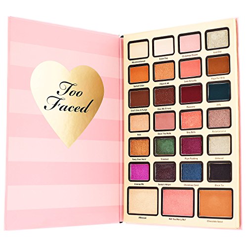 Studio : Too Faced Cosmetics Publisher : Too Faced Cosmetics Binding : Misc. Product Description What it is: A limited-edition makeup collection for eyes, lips, and face with an exclusive year-round beauty agenda What it does: For the first time in Too Faced history, they've not only created an amazing collection of beautiful shades for the eyes, face, and lips, but also a limited-edition year-round beauty agenda so you can try new looks in the most beautiful way all year long. This set contains: - 24 x 0.03 oz/ 0.95g Eyeshadows in Christmas Carol, Party Over Here!, Trimmed, Pinecone, Don't Give A Fudge, Love Actually, I Want It All, Iced Out, Santa's Helper, Fa La La La La, Halo, Faux Fur Only, Deck The Malls, Unwrap Me, Slay Bells, Jolly, Marshmallowed, Snow Day, Black Tie, Christmas Dream, Spiked Cider, Give Me S'more, Glittered, Plum Pudding - 0.08 oz/ 2.5 g Luminizer in #Blessed - 0.08 oz/ 2.5 g Bronzer in Chocolate Soleil - 0.08 oz/ 2.5 g Blush in Will You Merry Me? - 0.1 oz/ 3 g Deluxe Melted Matte Long Wear Lipstick in Sell Out - 0.17 oz/ 4.8 g Deluxe Better Than Sex Mascara - Leatherette mini zip-around agenda cover with built-in mirror - Sticker sheets - Paper-bound agenda 0