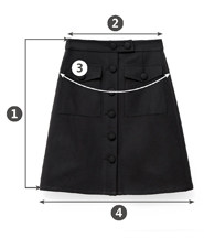 尺码 ①裙长 ②腰围 ③臀围 ④下摆围 ⑤里布下摆围