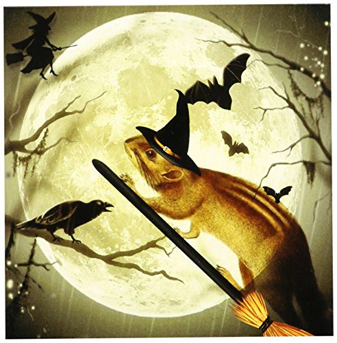 3dRose ct_150172_2 Cute Vintage Squirrel on a Broom with a Harvest Moon and Witch's Hat, She is Ready for Halloween Ceramic Tile, 6-Inch