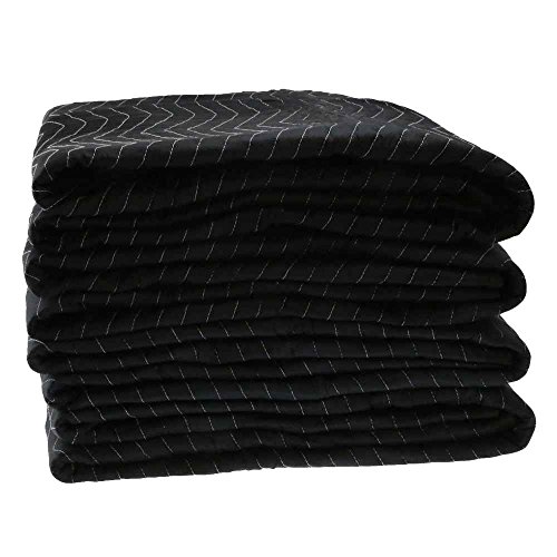 -. Feature : 72" X 80" Preferred moving blanket - Black on both sides / Weight = 6.7 lbs/each or 80.4 lbs/dozen / Woven polyester fabric on both sides- stitched in zigzag pattern (non-washable fabric) / Quantity = 4 / 2" non-woven binding on all 4 sides with 4 finished corners