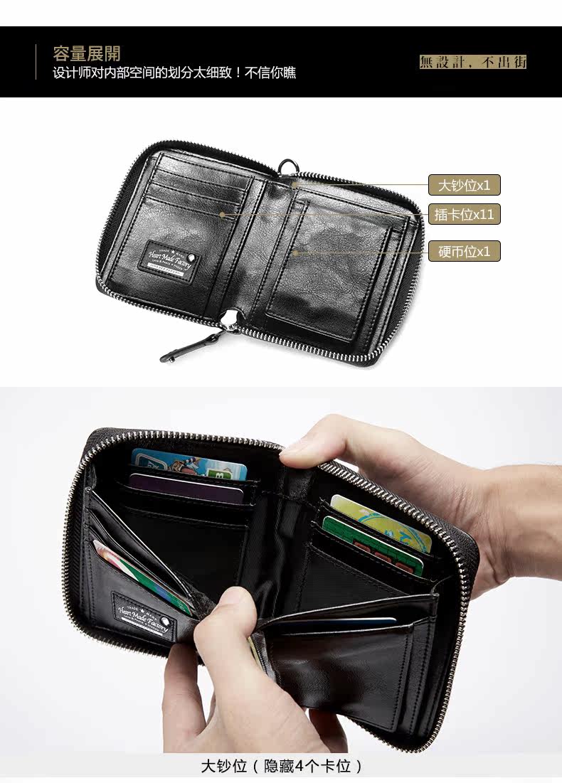 雄狮系列真皮男士钱包短款 头层牛皮拉链钱夹男竖款软皮