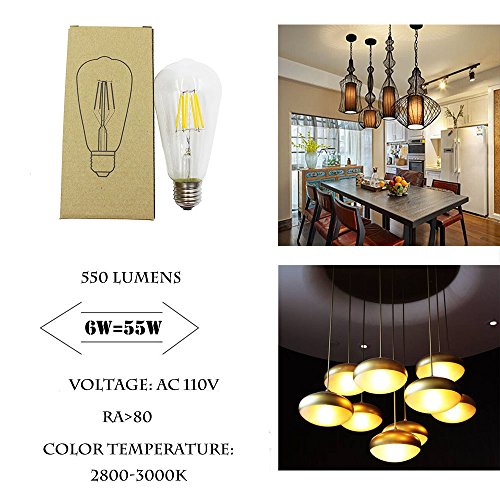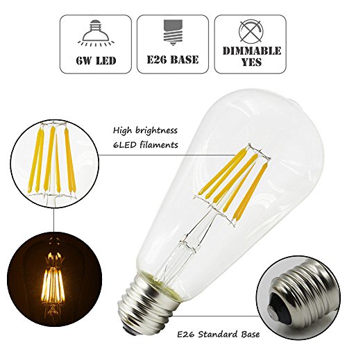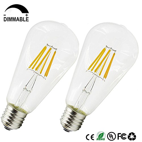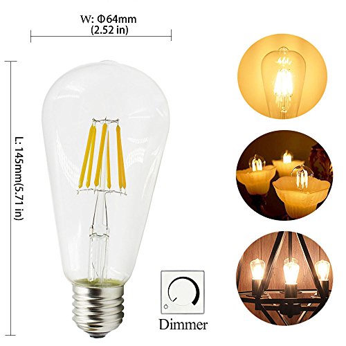 Dayker Dimmable ST64 LED Filament Edison Bulbs Antique 6W E26 Medium Screw Base Soft White Equivalent 55W Halogen Bulbs for Chandelier, Retro Pendant Lighting(2 Pack)