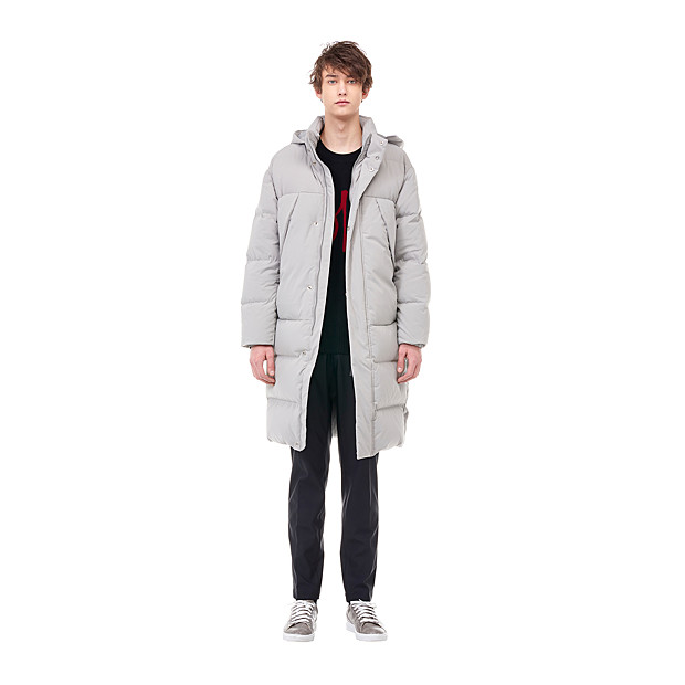 - 일본 수입 소재인 경량 스트레치 소재의 그레이 컬러 구스다운 점퍼