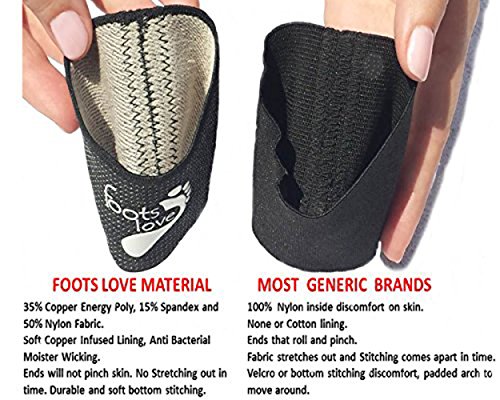 Studio : Foots Love. We only focus on a few Specialized Products. Each made of the Highest Quality and Athletics Approved. Publisher : Foots Love. We only focus on a few Specialized Products. Each made of the Highest Quality and Athletics Approved. Binding : Health and Beauty Product Description Foots Love IS THE ORIGINAL Plantar Fasciitis Copper Infused Sleeve Orthotics : Engineered to Ease Pain Associated with Heel and Plantar Fasciitis discomfort in Two Ways. 1) Compression that gently lifts and mimics the natural bow of the arch, Instant Pressure points turned off relaxing the nerves to allow healing. 2) Utilizing the Proven Healing Properties of Copper Energy Fabric. This soft Lining promotes Cell Tissue Generation, and Quicker Muscle Recovery. Increases blood flow, which helps to stimulate better circulation, reduce Lactic Acid build up. These Two Proven attributes work together for Fast Pain Relief and Comfort . We have studied the Market, Reviews and have made our Best Plantar Arch Orthotic. We believe the best available. This is a Premium product and Engineered to perform. For best results Do Not stretch much wider than your foot. This helps maintain stored close knit Copper Properties. Easy Care :Hand Wash, Air Dry. Fitting Size How to Measure: Start on top of foot about the widest center area of arch. Measure around foot with a string or blue tape can help. MAXIMUM length should be no more than 11.5 INCHES. Please do not purchase if your foot is wider this 12 inches round. Many people do with very swollen feet. Only to get poor performance because their feet may be to wide. We do realize if we all had the same size foot, each person will find different comfort in the same size orthotic. This is an issue with All Compression Sleeves. As with Any Foots Love product. If any Issue, Question or Concerns at all Let us know. We will replace or refund. Even if out of the warranty. Please do not give a low review without contacting. Foots Love Products are made to perform. Our Mission is to make you happy with your product. 0 |