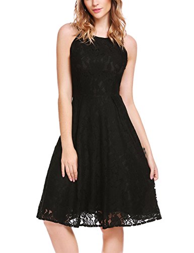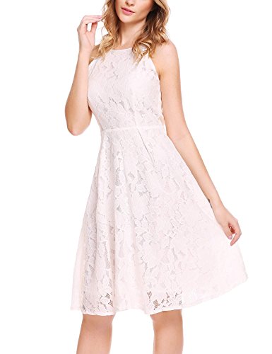 ANGVNS Women's Gorgeous O Neck Sleeveless A Line Lace Long Dress