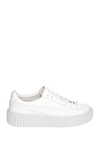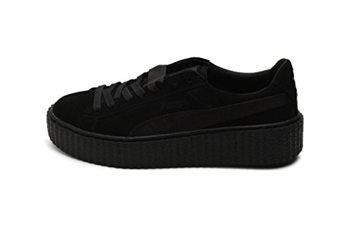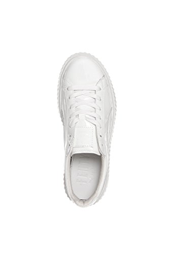 Patent leathet uppers in a classic creeper silhouette. Lace-up closure with a lightly padded tongue and collar. PUMA Fenty callout at tongue. PUMA Formstrip at lateral and medial sides. Breathable leather and synthetic linings. Lightly cushioned footbed for added support. PUMA callout at lateral side at PUMA Cat Logo at heel. Platform with a creeper outsole. Imported.