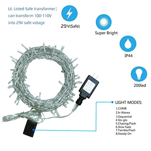 30M/99FT Bedroom Patio String Lights Indoor 200leds 8 Modes 29V Starry String Lights for Garden, Wedding, Room, Outdoor, Party, Holiday (Warm White, Safe Voltage, UL Listed)