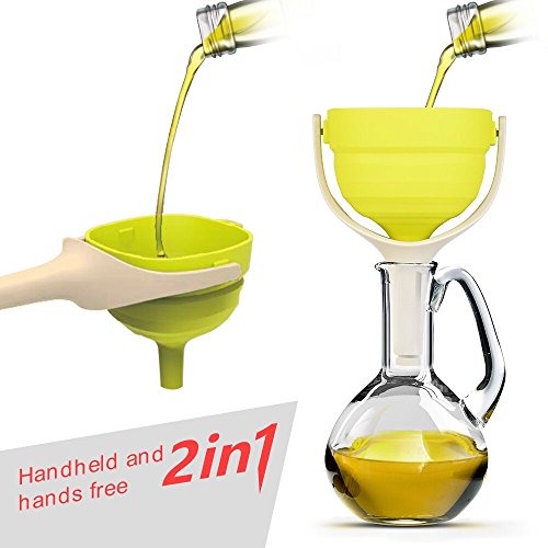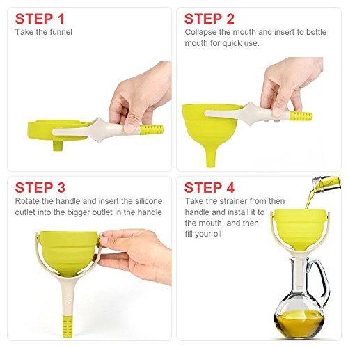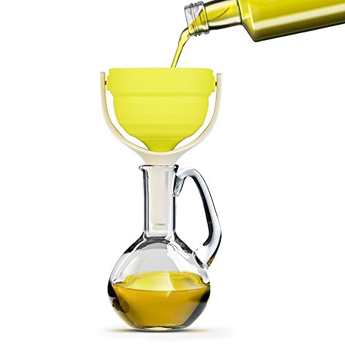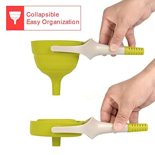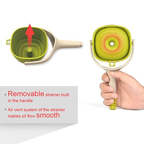 EVERIE Collapsible Silicone Large Wide Mouth Kitchen Oil Funnel with Removable Strainer (Large, Lime Green)