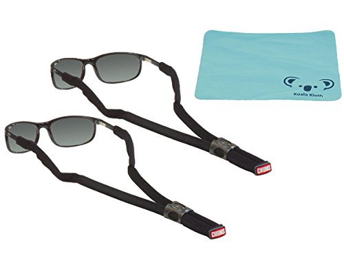 3 ITEM BUNDLE: 2 Chums Black Glassfloat Classic Sunglass Straps and 1 Koala Microfiber Cleaning Cloth | Compatible with sunglasses, eyeglasses, reading & computer glasses, and sports goggles & eyewear