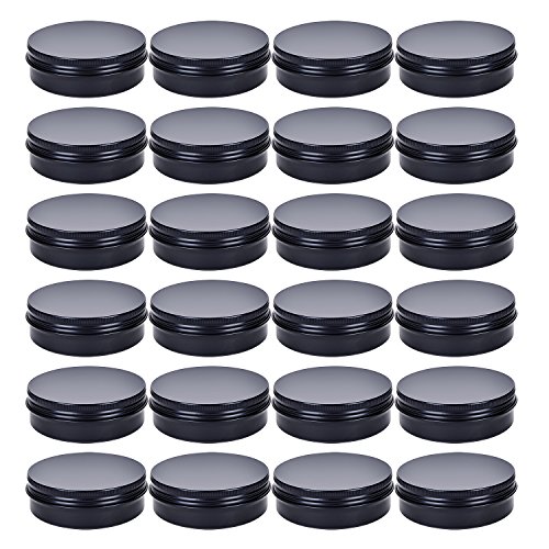 TMO 4 oz. Aluminum Tins Container Round Screw Lid Containers Metal Storage Tin Jars Aluminum Tin Cans Food Tins Travel Tins,24 Pack(Black)
