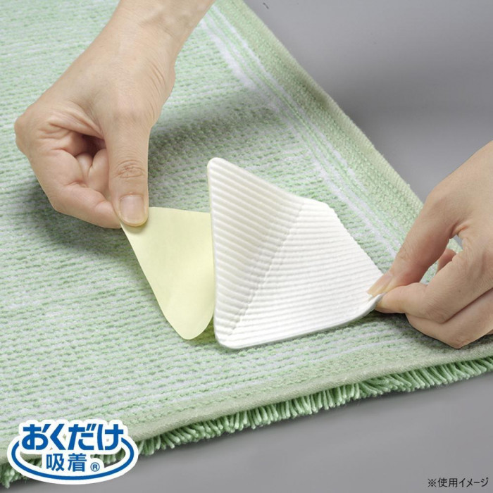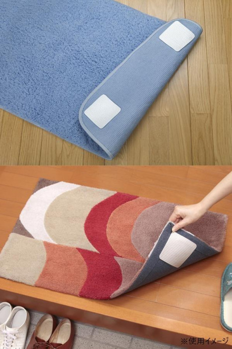お手持ちのマット(ラグ・い草マット・玄関マット・キッチンマットなど)の裏に貼ってお使いください。取り外し簡単で、ノリ跡も残りません!!貼ったまま洗濯もできます♪ |