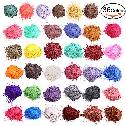 Mica Powder for Bath Bombs - Soap Dye for Soap Coloring - Soap Making Colorants Set - 0.17 oz 36 bags - Candle Making - Blush - Eye Shadow - Craft Projects - Nail Art - Resin Jewelry