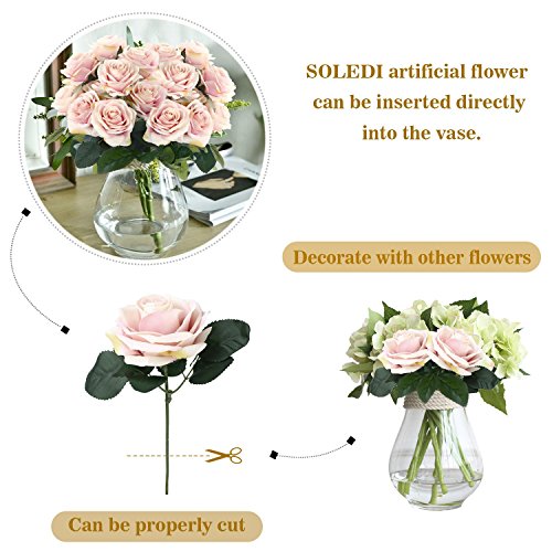★NEVER FADE: SOLEDI lifelike artificial flowers with bright colors and unique shape, are dignified, elegant, beautiful, vivid realistic and lifelike, will remain fresh and beautiful year after year. They will never wither or fall. Its classic design and high realistic appearance can meet your decoration demands in all seasons.