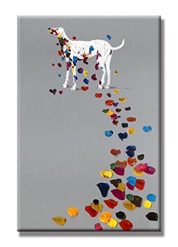 -. Title : SEVEN WALL ARTS - 100% Hand Painted Oil Painting Animal Mischievous Dog Funny Artwork for Home Decor