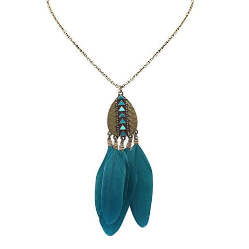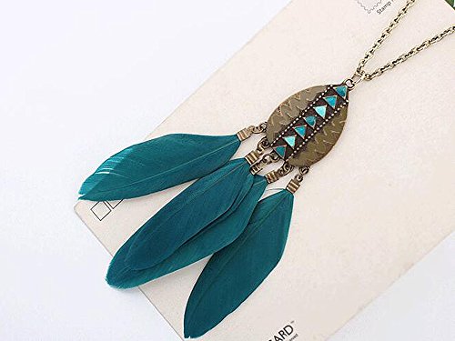 A&C Fashion Bohemia Blue Peacock Feather Pendant Necklace Jewelry for Women, Hot Sell Indiana Feather Torque for Girls.
