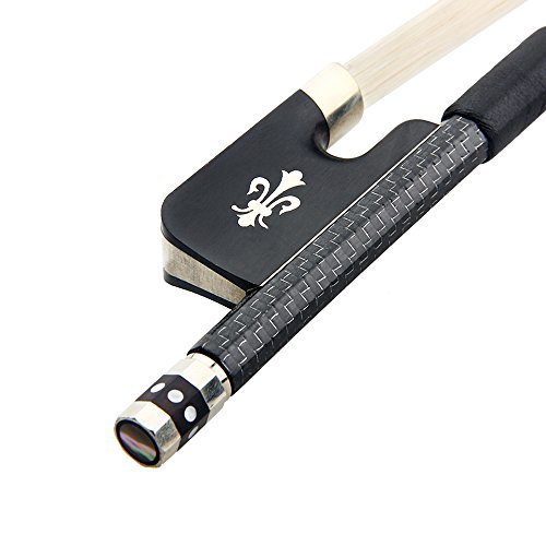Kmise Z4438H2 2 Set AA Top Braided Carbon Fiber Cello Bow, Fluer-de-lys Inlay Ebony Frog 4/4