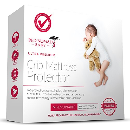 Red Nomad Crib Pad Mattress Protector – Ultra Soft Bamboo Fabric Waterproof Hypoallergenic Cover – Fits All Mini Portable Crib Sizes Including Pack N Play