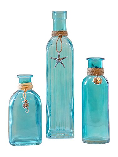 Coastal Collection - Trio of Blue Glass Decorative Bottles