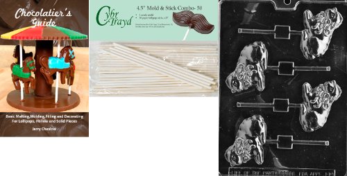 Cybrtrayd 'Lamb with Bow Lolly' Easter Chocolate Candy Mold with 50 4.5-Inch Lollipop Sticks and Chocolatier's Guide