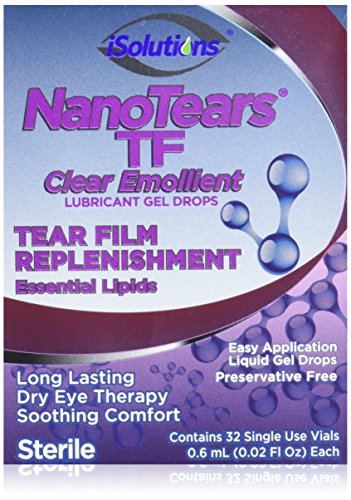 NanoTears TF Preservative Free Clear Emollient Lubricant Gel Eye Drops, 32 Single Use Vials