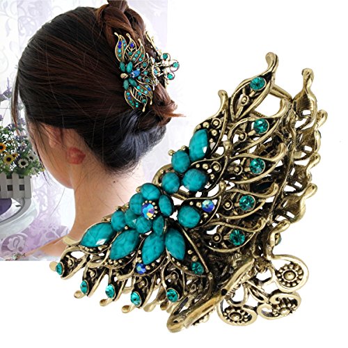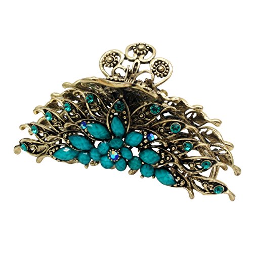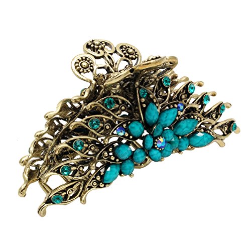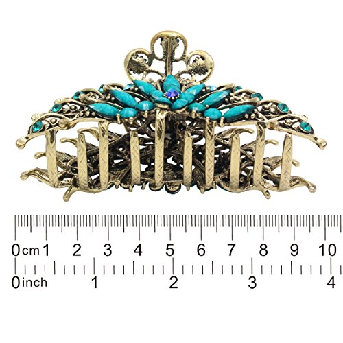 -. Feature : Pack of 1 vintage gold style metal hair claw,intricate filigree design / Size:4.0" x 1.7" x 2.0"(Large); Material:Metal alloy. Metal clip decorated with multi-faceted glass crystals and turquoises / Weight:0.17lb,pretty strong and heavy,strong metal sping,metal clips have teeths for strong grip on hair,hold well with thick and slick hair.Very stylish and comfortable,vibrant claw clip.Perfect for updos or an emergency bad hair day fix / It's idea hair clip for women,girls,hairdresser,use to clip back sections of hair,perfect for weeding,party,festival / For any occasions,home and office.A strong pump handle for ability to actually hold the selected hair in place,suitable for shower,bath,makeup,working,running,sports,garden and household cleaning,it never came loose