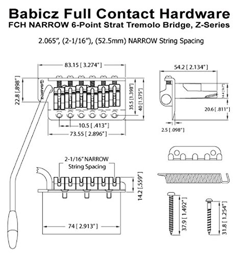 Babicz FCHZ6STNBKP Full Contact Hardware Z Series 6 Hole Strat Tremolo Narrow Spacing, Black