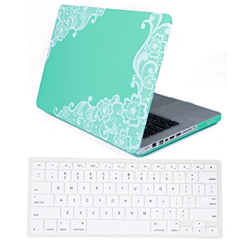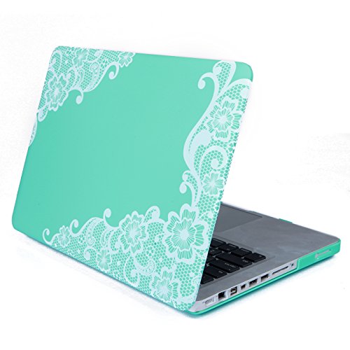 HDE MacBook Pro 13" Non-Retina Case Hard Shell Cover Designer Art Pattern + Keyboard Skin - Fits Model A1278 (Mint Green Lace)