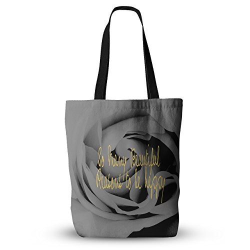KESS InHouse Suzanne Carter "Happy" Black Floral Everything Tote Bag, 18" x 18", Multicolor