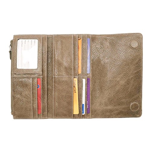 Amazon.com For a prettily polished look and complete organization, Latico's Shelby wallet is tops. Within its lovely, surprisingly slim leather body are 2 bill pockets, a zippered coin pouch, 11 card slots and an ID window. 0