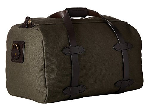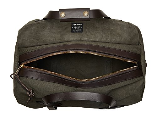-. Binding : Accessory -. Brand : Filson -. Color : Otter Green -. Department : mens -. EAN : 0706030388650 -. Feature : Solid brass zipper closure custom cut at Filson with storm flap for added security / Water- and abrasion-resistant Red Twill / Adjustable, removable leather carrying strap with shoulder pad / Bridle Leather handles with two-snap grip / Made in USA with imported material. Approx 18" W x 10" H x 11" D -. Model : 11070220 -. MPN : 11070220 -. PackageQuantity : 1 -. PartNumber : 11070220 -. ProductGroup : Apparel -. ProductTypeName : BAG -. Size : OS -. Title : Filson Small Duffle Bag -. UPC : 706030388650