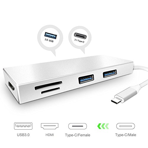 Digital AV Multi-port Adapter HDMI 4K Output, Type C Adapter 3.1 Cable Fast Charging with USB C to HDMI PD, Dual USB 3.0 Port, 1 USB 2.0, TF / SD Card Reader, 7 Port USB Charger for MacBook Pro