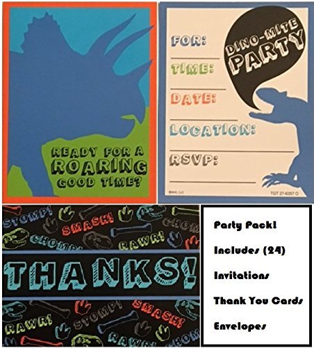 Dinosaur Invites, Invitations and Thank you Cards bundle, 24 pack includes envelopes, fill in postcard style invitations, great for parties!