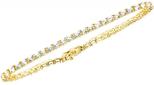 -. Binding : Jewelry -. Brand : Paradise Jewelers -. Department : womens -. Feature : 3.30 to 6.65 Total Carat Weight of White Cubic Zirconia (CTW Varies with Length) with Yellow Gold Finish Over Certified Brass / Available in 5 to 10 Inches with Half Sizes / Bracelet Width: 3.3 mm; Product Enclosed in Black Velvet Gift Box / Ships Same Day if Order Received by 3:00 PM Central USA; Free First Class Shipping Includes Tracking / 30-Day, Hassle-Free, Full Money Back Guarantee; Contact Us to Process a Return and Receive a Prepaid Label with Tracking -. Label : Paradise Jewelers -. Manufacturer : Paradise Jewelers -. ProductGroup : Jewelry -. ProductTypeName : FASHIONNECKLACEBRACELETANKLET -. Publisher : Paradise Jewelers -. Studio : Paradise Jewelers -. Title : Ladies 5.00CTW Cubic Zirconia 14K Gold-Plated Brass Tennis Bracelet 5-10 Inches