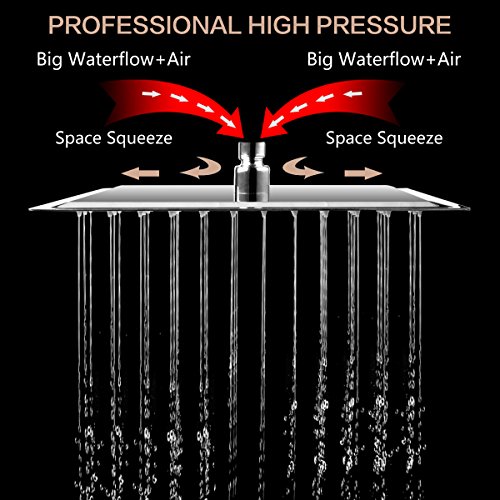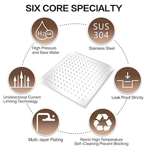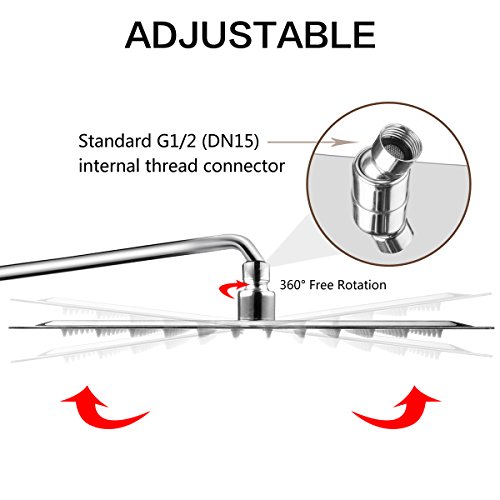 - ☂LEAK PROOF AND RUST RESISTANCE: The 12 Inch Large Square Shower head are made of top quality, solid stainless steel 304 for the highest rust resistance and longevity.Use the best soft rubber gasket and teflon tape eliminates leaking.Very smooth, highly polished, mirror-like chrome finish making it a beautiful addition to any home decor style.