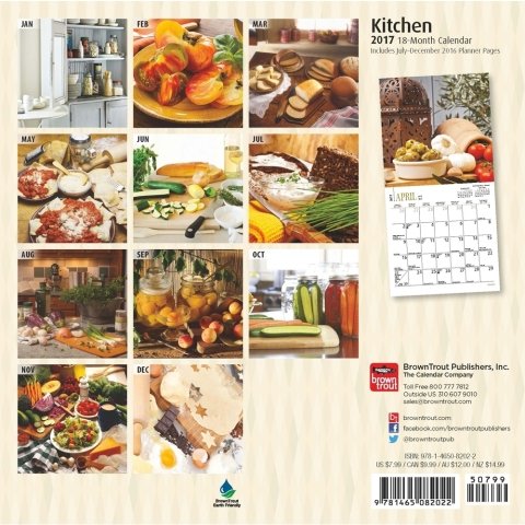 16-month Kitchen mini calendar 2017 includes 13 stunning images with large grids. This 12" x 12" calendar features an opening spread with a beautiful calendar to plan the last few months of the year and prepare for 2017.